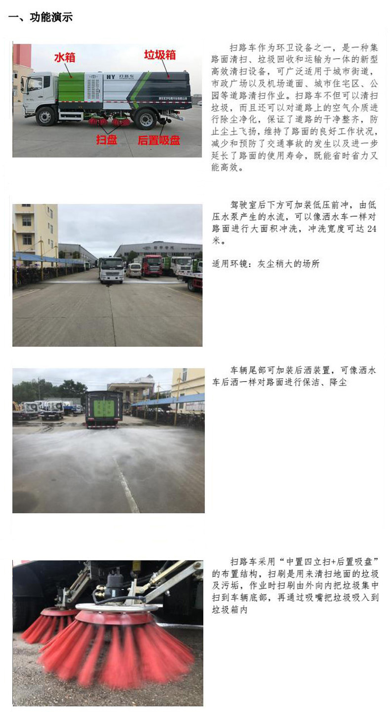 具有路面清洗、路面清掃、路緣清洗、路緣和路緣石立面洗刷、低壓沖洗、噴霧降塵等多種功能。