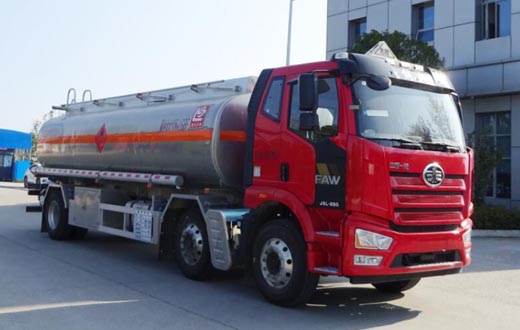 罐體總容量:21.2立方米, 罐體有效容積:20.24立方米;危險貨物運輸車輛的類型為FL型,介質zui大密度830千克/立方米;罐體尺寸(長×長軸×短軸)(mm)為:7450×2300×1600;僅采用1900+5100mm軸距;選裝左右兩側管廂樣式及出口箱樣式,選裝后示廓燈支架樣式及罐后無落水管;側、后防護裝置材料材質:Q235B,側、后防護均采用螺栓連接,后防護裝置斷面尺寸為(mm):80×150,后部防護離地高度:450mm;僅采用底盤子午線輪胎;安裝具有衛星定位功能的行駛記錄儀;安裝前輪pan式制動器和限速裝置,限速79km/h,安裝EBS,EBS控制系統生產廠家/型號:威伯科汽車控制系統(中國)有限公司/EBS3;發動機型號及油耗值(L/100km)為:CA6DH1-26E61(26.04),CA6DH1-24E61(26.04),CA6DH1-22E61(26.04);該車后軸采用空氣懸架;轉向輪安裝bao胎應急防護裝置;該車型可選裝ETC車載裝置.