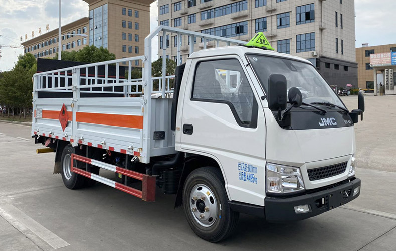 1、該車適用于運輸危險品.該車用于運輸具有獨立容器(瓶)包裝的物品.危險貨物類項號:2.1,2.2;運輸易燃氣體時掛2.1類警示牌,運輸非易燃無毒氣體時掛2.2類警示牌.2、側,后防護材料均為Q235,螺栓連接,后防護截面尺寸φ100mm,下邊緣離地高410mm;選裝后部無尾板時,后防護材料為Q235,焊接,截面尺寸(mm):100×50,下邊緣離地高410mm.尾板收起狀態水平長度為280mm,尾板質量為350kg.3、整備質量含滅火器及隨車工具;貨廂重量為565kg;材質/厚度:底板Q235/3mm;側墻板Q235/1.5mm;后墻板Q235/1.0mm.4、僅選用排氣管前置、限速裝置(限速80km/h)、前輪盤式制動及子午線輪胎的底盤,轉向輪安裝輪胎爆胎應急防護裝置,安裝具有衛星定位功能的行駛記錄儀.ABS系統控制器型號/生產企業: APG3550500A/浙江亞太機電股份有限公司,3550B500/浙江亞太機電股份有限公司,VIE ABS-II/浙江萬安科技股份有限公司.發動機/油耗值(L/100km)對應關系為:JX493ZLQ6D/10.75,JX4D25A6H/10.83.隨底盤選裝駕駛室,選裝白色中網,選裝白色前保,選裝黑色前保,廂體選裝無柵欄,選裝柵欄樣式,選裝貨箱欄板結構,選裝尾板樣式,選裝無后尾板,該車可選裝直接供電式ETC車載裝置.