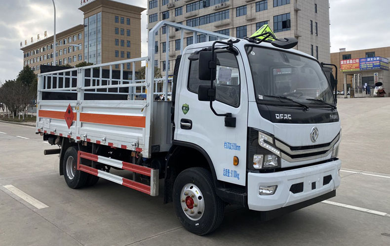 1、該車適用于運輸危險品,運輸具有獨立容器(瓶)包裝的物品。運送危險物品類項號:2.1,2.2。2、側、后防護材料為Q235,螺栓連接,后防護截面尺寸(mm)Φ120,下邊緣離地高445mm。選裝后部無尾板時,后防護材料為Q235,焊接,截面尺寸(mm)100×50,下邊緣離地高480mm。尾板收起狀態水平長度為300mm,尾板質量為450kg。選裝欄板樣式,選裝無柵欄,選裝柵欄樣式。3、僅選用3308mm軸距,僅選用排氣管前置、限速裝置(限速80km/h)、前輪盤式制動及子午線輪胎的底盤,轉向輪安裝輪胎爆胎應急防護裝置,安裝帶有衛星定位功能的行駛記錄儀,隨底盤選裝駕駛室,選裝后視鏡,選裝ETC。ABS系統控制器型號/生產廠家: ABS/ASR-24V-4S/4M/襄陽東風隆誠機械有限責任公司。發動機/油耗值(L/100km)對應關系為: ZD30D16-6N/17.2,YCY24140-60/16.5, NV30-C6G/17.3, CY4SK261/17.4, YCY30165-60/17.5, CY4BK361/17.9。隨底盤選裝電瓶、儲氣罐安裝位置。